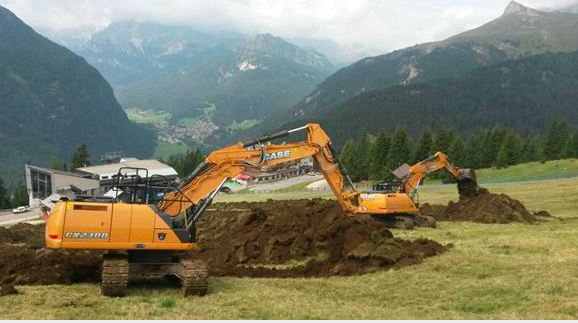 El invierno y la temporada de esquí se acerca y ya se trabaja a fondo en el arreglo y la preparación de las pistas. Por eso, no es de extrañar que dos excavadoras de cadenas CASE CX210D y CX230D estén operando en el paso del Pordoi, que une las regiones italianas del Véneto y Trentino-Alto Adigio. El trabajo se lleva a cabo en el incomparable escenario de la llamada «Terraza de los Dolomitas».