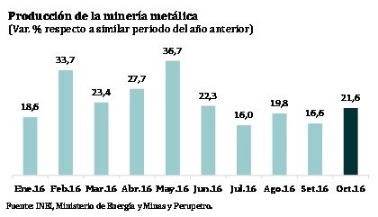 “En los 10 primeros meses de este año, la producción cuprífera alcanzó una expansión de 45.4% con relación a similar período de 2015”, remarcó.